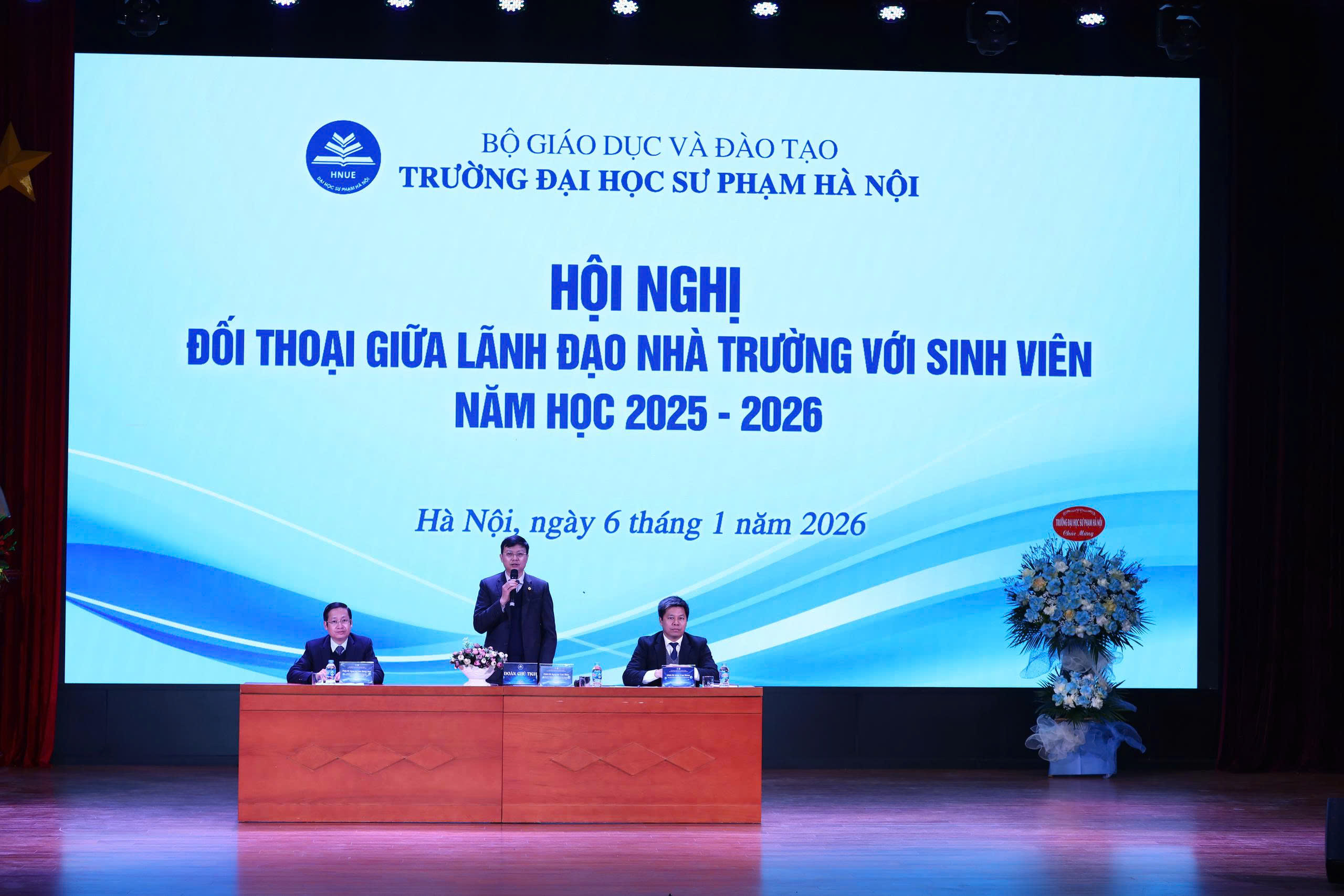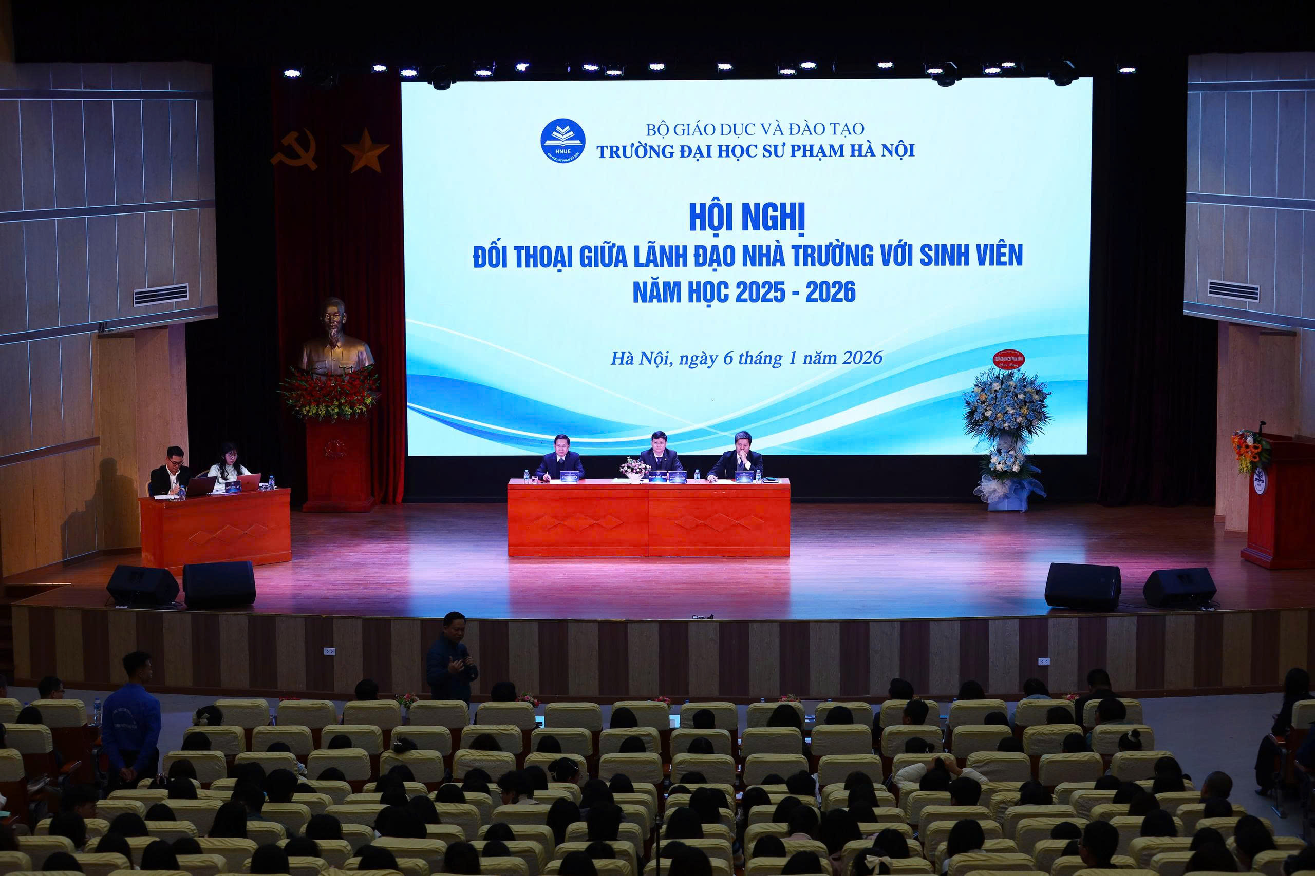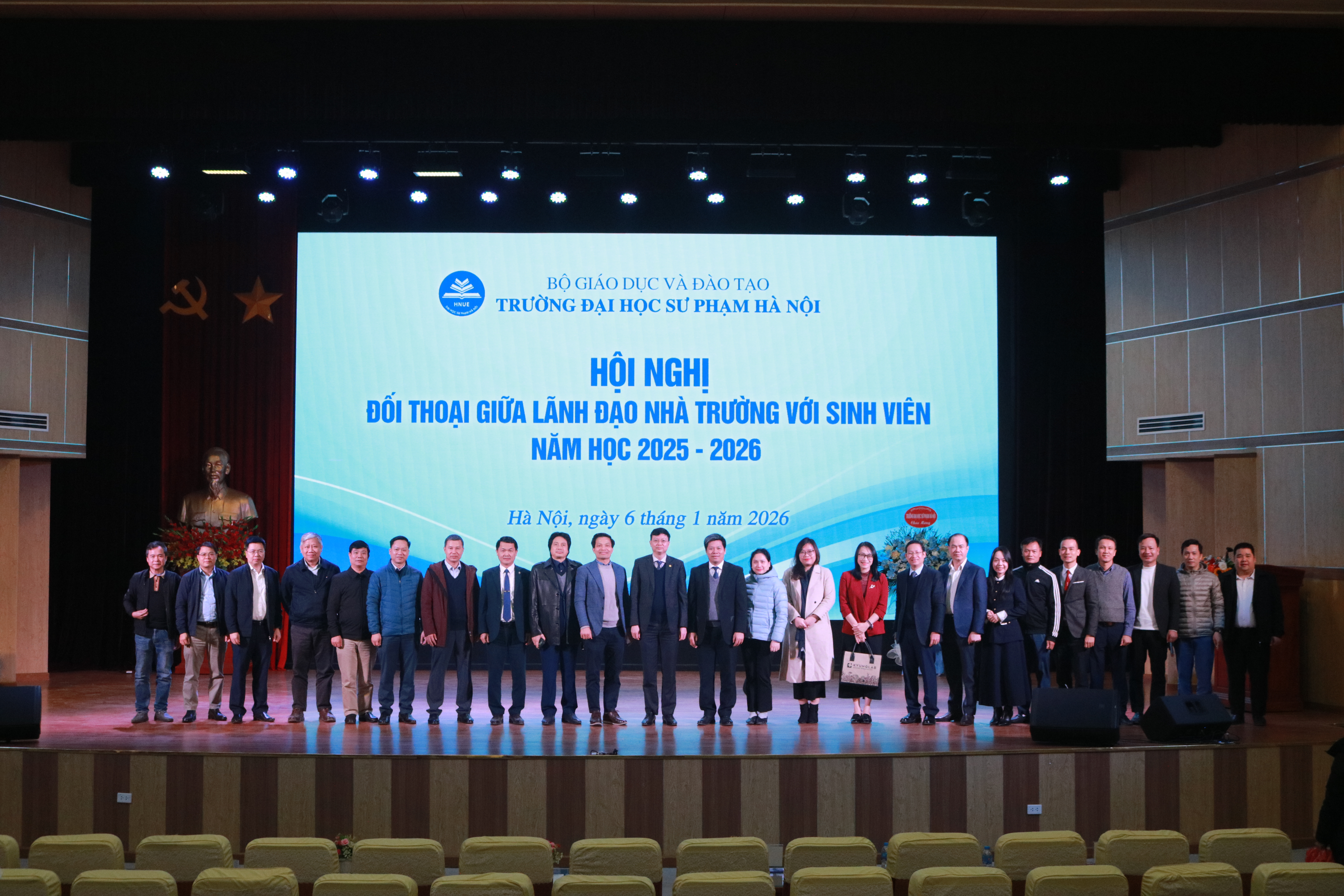 Hội nghị đối thoại giữa lãnh đạo nhà trường với sinh viên năm học 2025 - 2026 đã khép lại với nhiều dấu ấn đáng nhớ. Hội nghị không chỉ giúp lãnh đạo Nhà trường, các phòng ban chức năng, các khoa đào tạo được trực tiếp trao đổi, tiếp nhận những mong muốn của sinh viên, mà còn giúp mỗi sinh viên được trang bị thêm nhiều thông tin bổ ích để phục vụ cho công tác học tập, rèn luyện lâu dài. Ban tổ chức Hội nghị tin rằng với khí thế phấn khởi chào năm mới 2026, toàn thể đội ngũ cán bộ, công nhân viên và sinh viên nhà trường sẽ tiếp tục tạo được nhiều thành tựu quan trọng hướng tới kỷ niệm 75 năm thành lập Trường Đại học Sư phạm Hà Nội./.