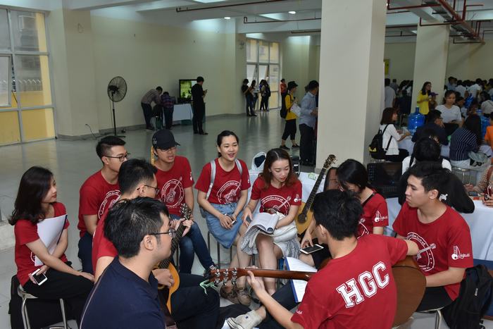Câu lạc bộ Guitar đón tiếp các tân sinh viên trong khuôn viên Kí túc xá. Ảnh: Lê Linh