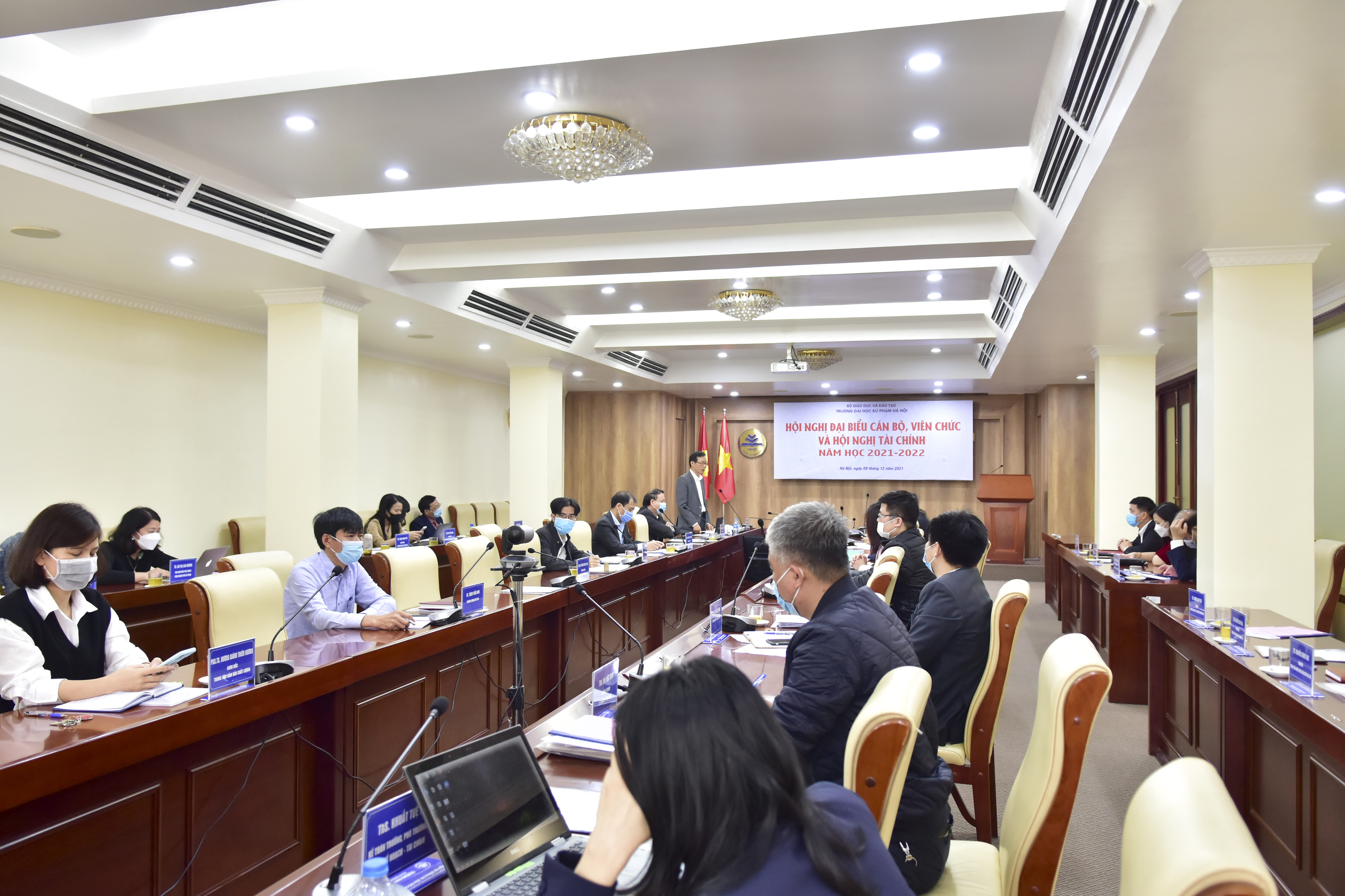 Trước bối cảnh diễn biến phức tạp của dịch bệnh COVID-19, Hội nghị được tổ chức theo hình thức kết hợp trực tiếp và trực tuyến qua nền tảng Zoom. Tại Hội nghị, 159 đại biểu đã lắng nghe các báo cáo: 1. Báo cáo tổng kết công tác năm học 2020 - 2021 và phương hướng công tác năm học 2021 - 2022; 2. Báo cáo tổng hợp ý kiến đóng góp của các đơn vị cho báo cáo của Trường; 3. Báo cáo tài chính; 4. Báo cáo của Ban Thanh tra nhân dân; 5. Báo cáo của Ban Thanh tra giáo dục; Hội nghị đã thảo luận các nội dung: - Kết quả thực hiện nhiệm vụ chính trị của Trường năm học 2020 - 2021 và phương hướng, nhiệm vụ năm học mới 2021 - 2022. - Công tác tài chính của Trường năm 2020.