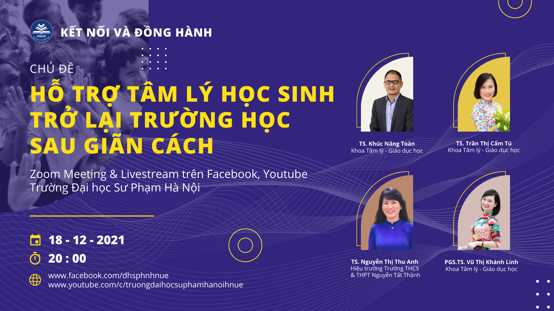 Chủ đề "Hỗ trợ tâm lí học sinh trở lại trường học sau giãn cách” trong chuỗi Chương trình Kết nối và đồng hành của Trường Đại học Sư phạm Hà Nội hy vọng sẽ cùng với các nhà trường và thầy cô giáo sẵn sàng chào đón sự trở lại của các học sinh. Khi đó, trở lại trường học không phải là nỗi ám ảnh, là gánh nặng, mà mỗi ngày được trở lại trường học sẽ thực sự là một một ngày vui đối với các học sinh.