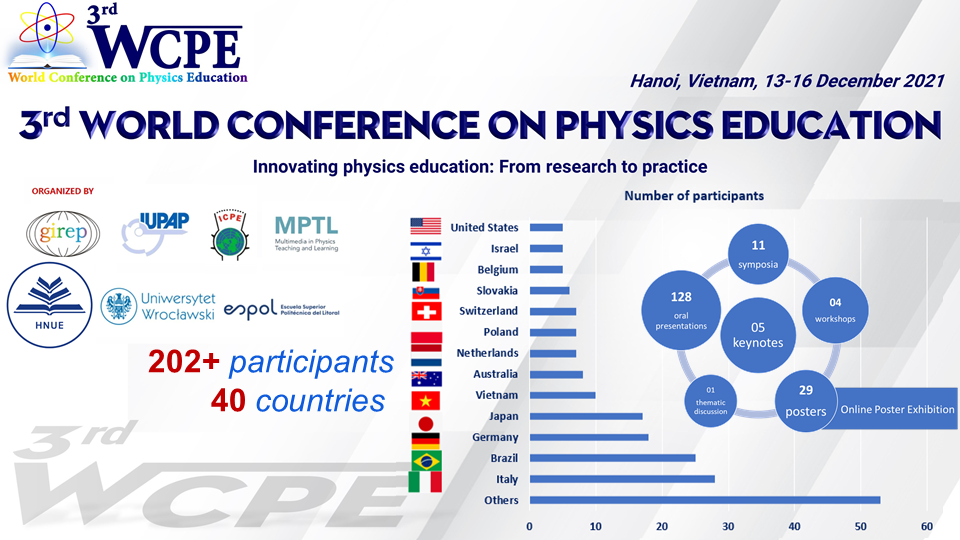 Hội thảo quốc tế về giáo dục Vật lí - World Conference on Physics Education (WCPE) được tổ chức bốn năm một lần bởi các hiệp hội giảng dạy Vật lí trên thế giới: GIREP (Groupe International de Recherche sur l'Enseignement de la Physique), IUPAP-ICPE (International Commission on Physics Education – International Union for Pure and Applied Physics), MPTL (Multimedia in Physics Teaching and Learning) và các trường đại học thành viên. Sau hai lần đầu tổ chức thành công ở Istanbul, Thổ Nhĩ Kỳ, năm 2012 (WCPE 1) và São Paulo, Brazil năm 2016 (WCPE 2), Hội thảo WCPE lần thứ 3 – Chủ đề: "Innovating physics education: From research to practice" được tổ chức bởi Trường Đại học Sư phạm Hà Nội với sự hỗ trợ của Đại học Wrocław, Ba Lan, Đại học ESPOL, Ecuador và Hội giảng dạy Vật lí Việt Nam.